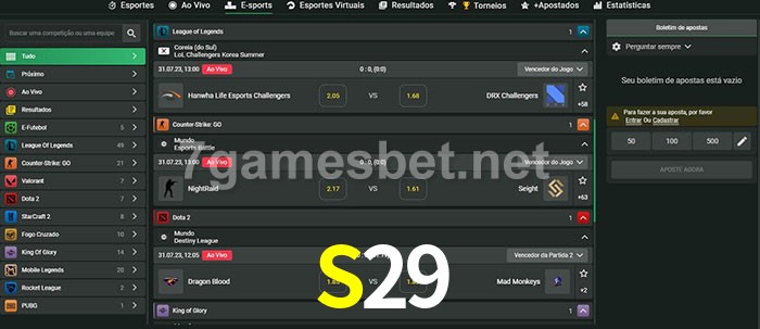 O S29 oferece uma grande seleção de opções de apostas em e-sports com probabilidades competitivas
